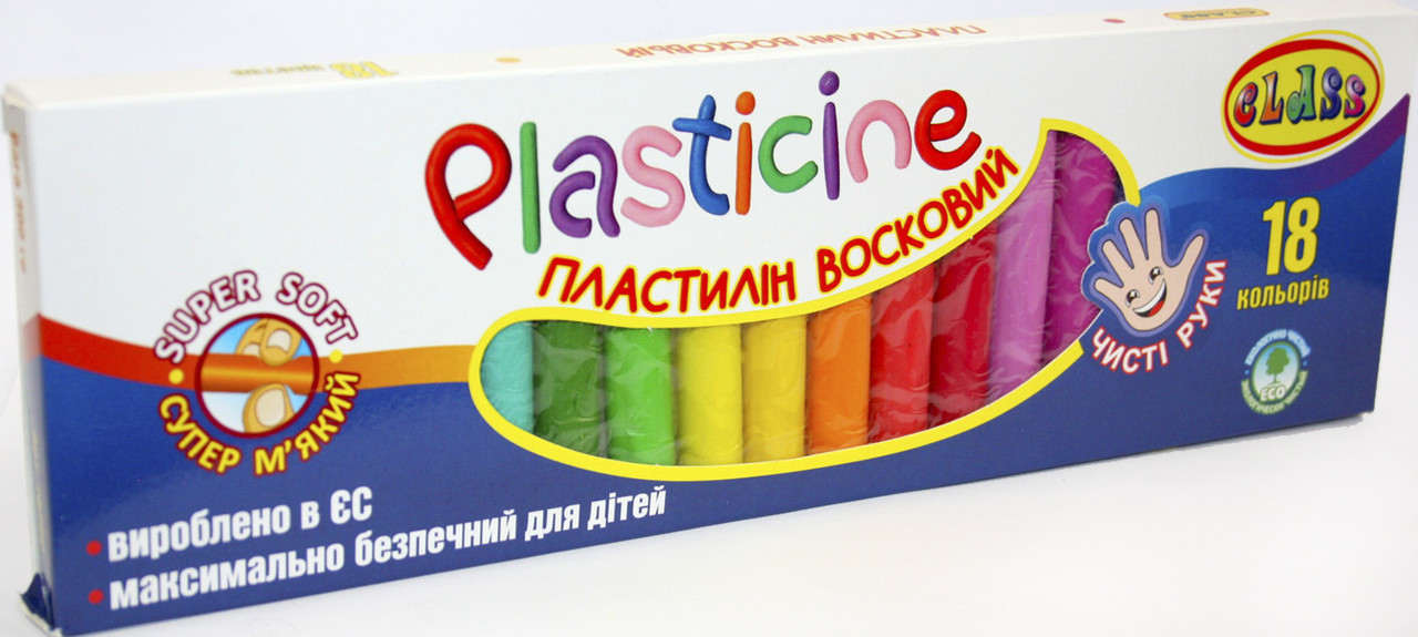 Вироблений на основі воску з максимальним ступенем очистки. Призначений для ліплення і моделювання в дитячій творчості. Набір складається з брусків 18 кольорів круглої форми, має яскраві і насичені кольори, м'який та пластичний, дуже легко розминається, не липне до рук. Шматочки пластиліну не кришаться, легко зчеплюються між собою. Відмінна здатність до змішування кольорів. Пластилін не залишає жирних і кольорових слідів на руках та предметах. Має нейтральний запах. Рекомендовано для дітей від 3х років. Пластилін екологічно чистий, нетоксичний, абсолютно безпечний для дитини. Картонна коробка. Вага 300 гр.